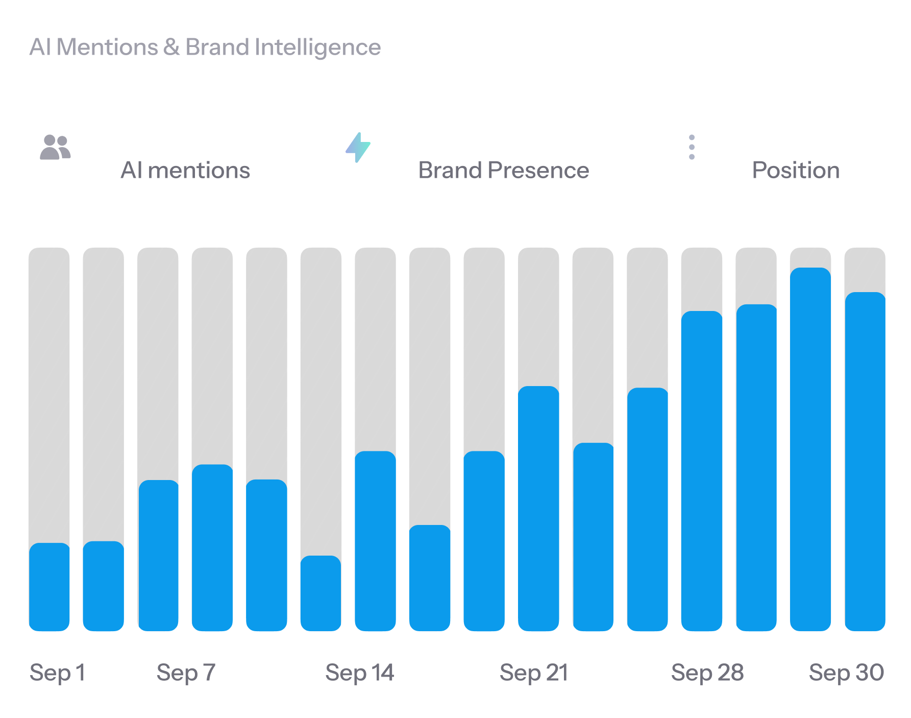 AI moves fast, we know that. We monitor algorithm updates across ChatGPT, Claude, Perplexity, Gemini, and emerging platforms constantly. When ranking factors change (like when ChatGPT updated their citation preferences in late 2024), we push updates to all customers within days, not months. We also track new AI platforms before they hit mainstream and add support proactively. Your subscription includes all these updates automatically, no additional fees when we add new AI platforms or adapt to algorithm changes. Think of it as future-proofing insurance for the AI search landscape.