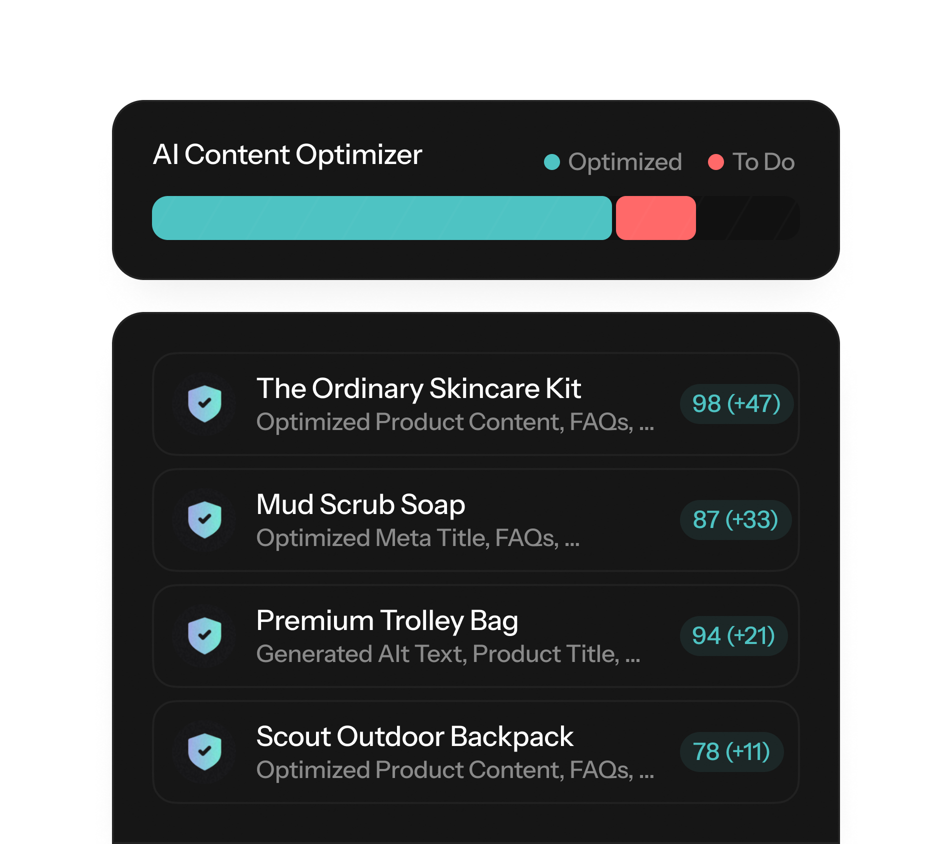Rewrites product titles, descriptions, and content for maximum AI visibility (plus boosting your SEO rankings).